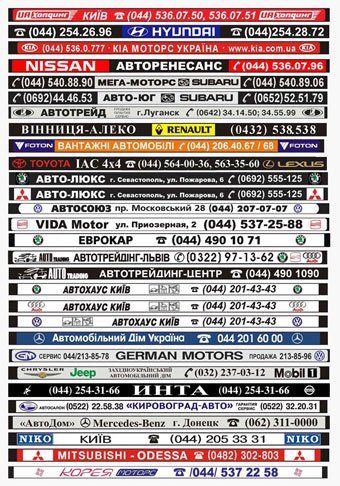 Рекламные надписи на номерную РАМКУ наносятся наиболее долговечным способом - методом шелкографии. Этот вид печати выполняется специальными красками проникающего действия, что даёт гарантию качества и стойкости надписей к воздействию химических реагентов, температурных перепадов, атмосферных осадков, активного солнечного излучения.